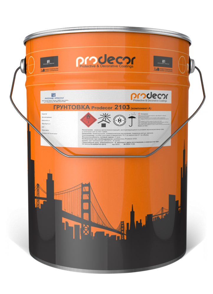 Реестр УРАЛХИМ Применяется в комплексе с эмалью Prodecor 2303 для долговременной защиты от коррозии металлоконструкций различного назначения, эксплуатирующихся в условиях высокоагрессивных сред, а также в условиях категории C5 I по ISO 12944. Грунтовка Prodecor 2103 сохраняет свои защитные свойства в комплексе с эмалью Prodecor 2303 не менее 15 лет